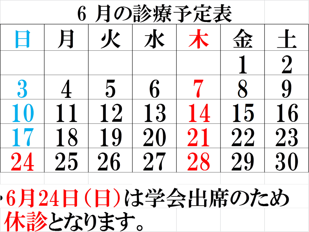 6月の診察日のご案内
